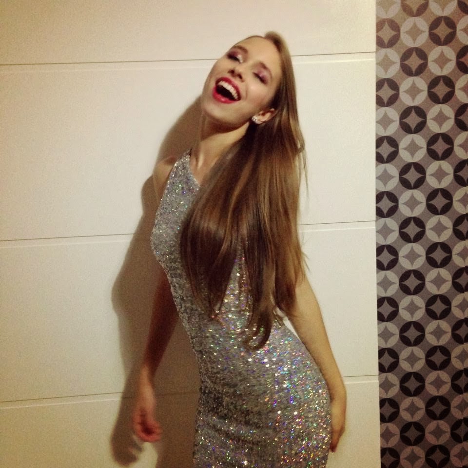 O penteado eu mesma fiz, mas achei que ficou uma graça. São duas tranças laterais com o resto solto e chapado.