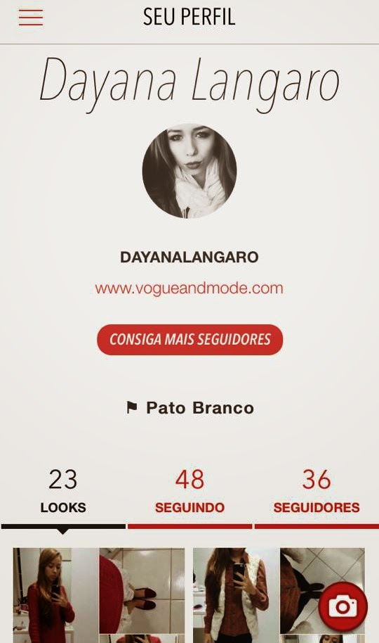 Esse é o meu perfil. Para quem tem o app é só me seguir lá para acompanhar todos os looks que eu posto em primeira mão!