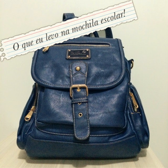 Para começar, minha mochila é da Ana Luxory e é em couro sintético. Não era o que eu queria, mas comprei em cima da hora e foi o que achei.