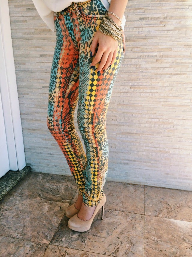 Começando então com essa calça toda colorida! É um mix de estampas: xadrez, onça, cobra… uma loucura maravilhosa! haahha E o melhor, tem essa opção de estampa em mini saia na loja também, vale conferir!